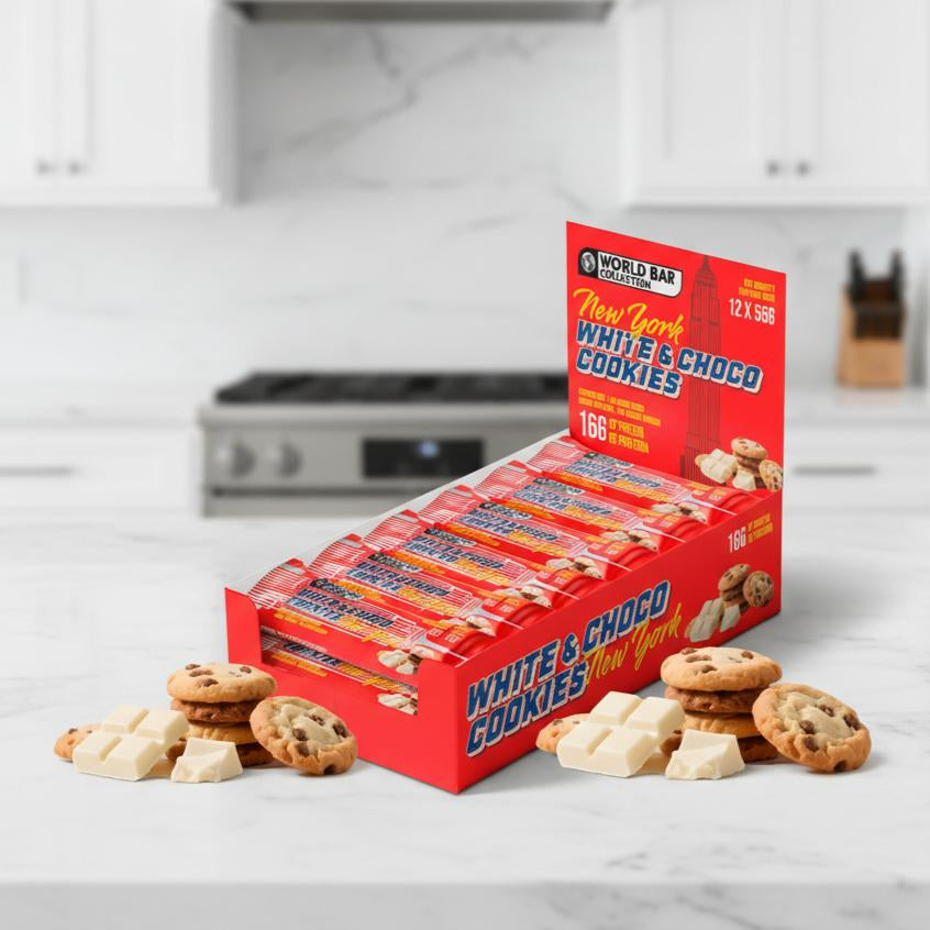 La edición New York de World Bar Collection te transporta al corazón de la Gran Manzana con una barrita proteica sabor White & Choco Cookies, que mezcla el toque clásico de las galletas con la cremosidad del chocolate blanco. Cada barrita aporta 16 g de proteína, convirtiéndose en un snack equilibrado y perfecto para disfrutar en cualquier momento del día. Inspirada en la esencia de la ciudad que nunca duerme, ofrece una experiencia dulce, intensa y con una textura que conquista desde el primer bocado.