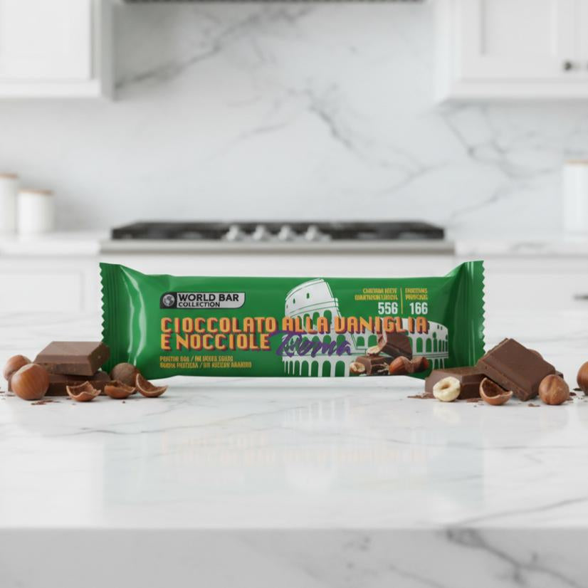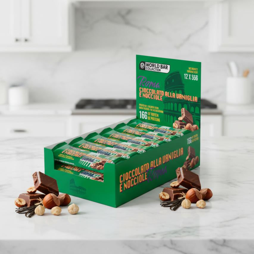 La edición Roma de World Bar Collection rinde homenaje a la tradición repostera italiana con sabor Cioccolato alla Vaniglia e Nocciole. Una combinación equilibrada entre cacao, vainilla suave y el toque delicado de la avellana. Cada barrita aporta 16 g de proteína, convirtiéndose en una opción deliciosa y práctica para disfrutar en cualquier momento del día.